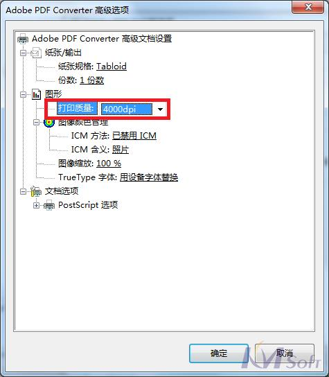 Adobe pdf打印機,打印首選項,高級,設(shè)置打印質(zhì)量為4000dpi即可,默認(rèn)為1200dpi