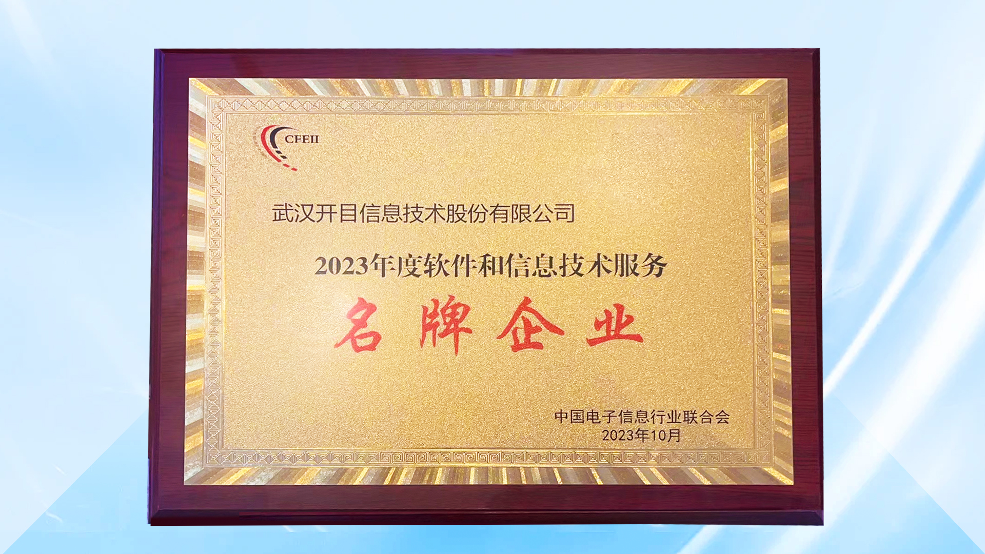 近日, 在2023世界數字經濟大會暨第十三屆智博會上,中國電子信息行業聯合會公布“2023軟件和信息技術服務名牌企業”獲獎名單。憑借在研發創新、市場開拓、產品競爭力、品牌影響力等方面取得的突出成績,開目軟件成功入選。