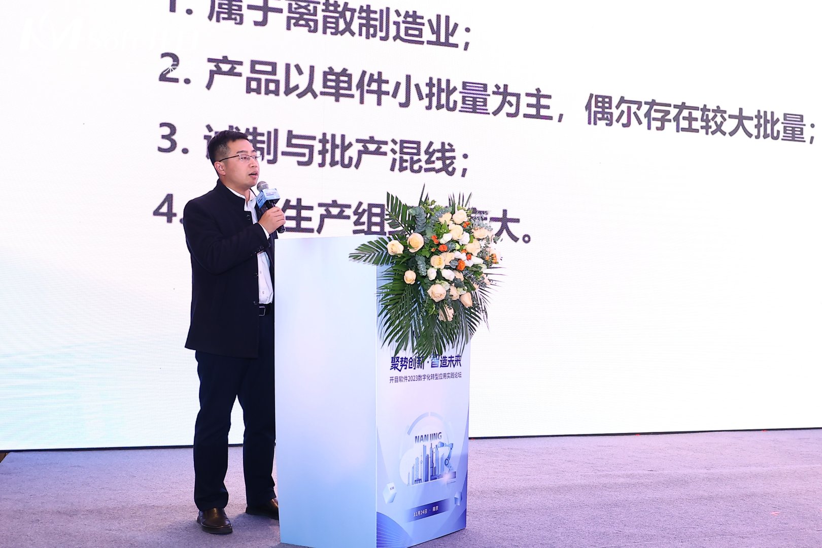 航天科工集團某公司信息化專家李部長在 《先進制造業的數字化工藝制造端到端應用實踐》主題演講中,從企業信息化現狀為切入點,圍繞項目背景、項目方案、項目成果、項目展望等,分享了企業在數字化轉型、智能化生產過程中的創新實踐成果與體會,為開目研發工藝制造一體化解決方案打“call”。