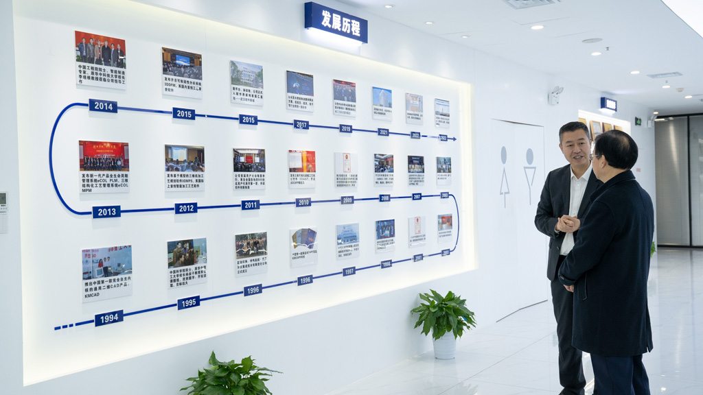 寧靜波總經理帶領調研組一行參觀了公司展廳,并詳細介紹了開目的發展歷程、產品創新、科研攻關、產業布局以及未來規劃。寧總提到,開目軟件專注工業軟件自主創新三十余年,潛心鉆研工業軟件核心技術,現已研發了 PLM、MPM、MOM 以及 3DDFM、3DMPS、3DAST、KMVue等20多款工業軟件領先產品,并在航空、航天、航發、船舶、重工機械等諸多高端裝備制造企業成功應用,幫助企業實現數字化轉型及國產化替代,高端客戶市場占有率在國產工業軟件中名列前茅。