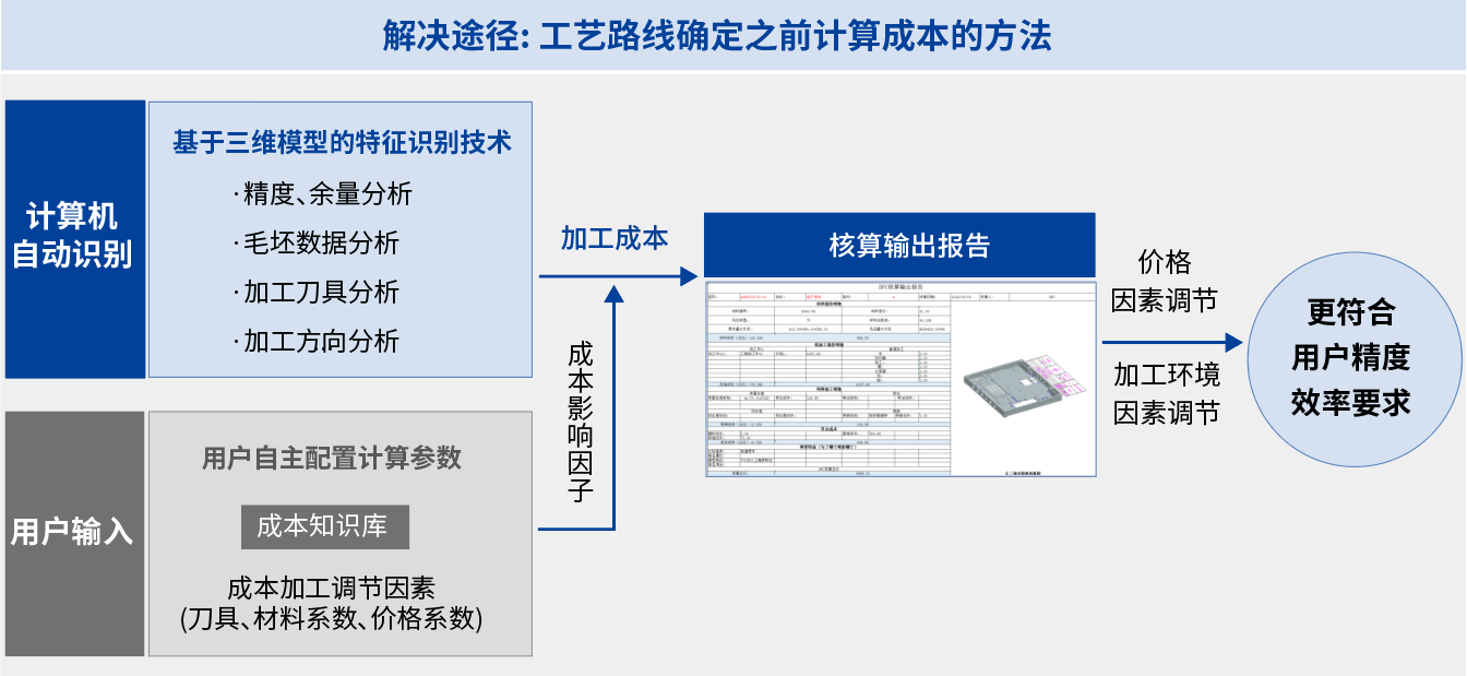 該軟件基于自主研制的先進三維設計模型特征識別技術,以及零件加工成本計算模型,充分融入“并行工程”的關鍵思想,能快速獲得相對準確的加工成本,為面向成本的設計優(yōu)化提供參考指引,也為企業(yè)對外產品報價或產品外協(xié)件采購價格提供量化依據,助力企業(yè)發(fā)現(xiàn)關鍵成本影響因素,挖掘成本優(yōu)化潛力,實現(xiàn)降本增效。