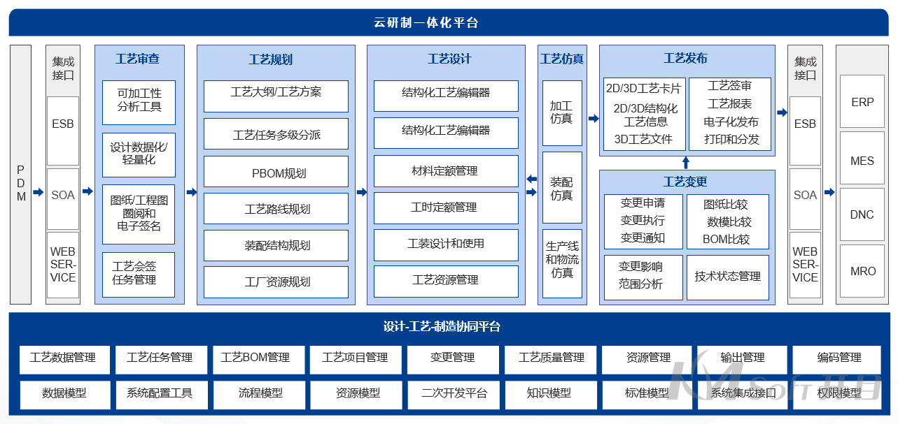 與PLM/MES/ERP以及設(shè)計(jì)和仿真工具的集成管理,承接上游設(shè)計(jì)數(shù)據(jù),強(qiáng)化工藝橋梁作用,為下游生產(chǎn)提供業(yè)務(wù)所需的各類(lèi)工藝要素,保證工藝數(shù)據(jù)的一致性、及時(shí)性及完整性;