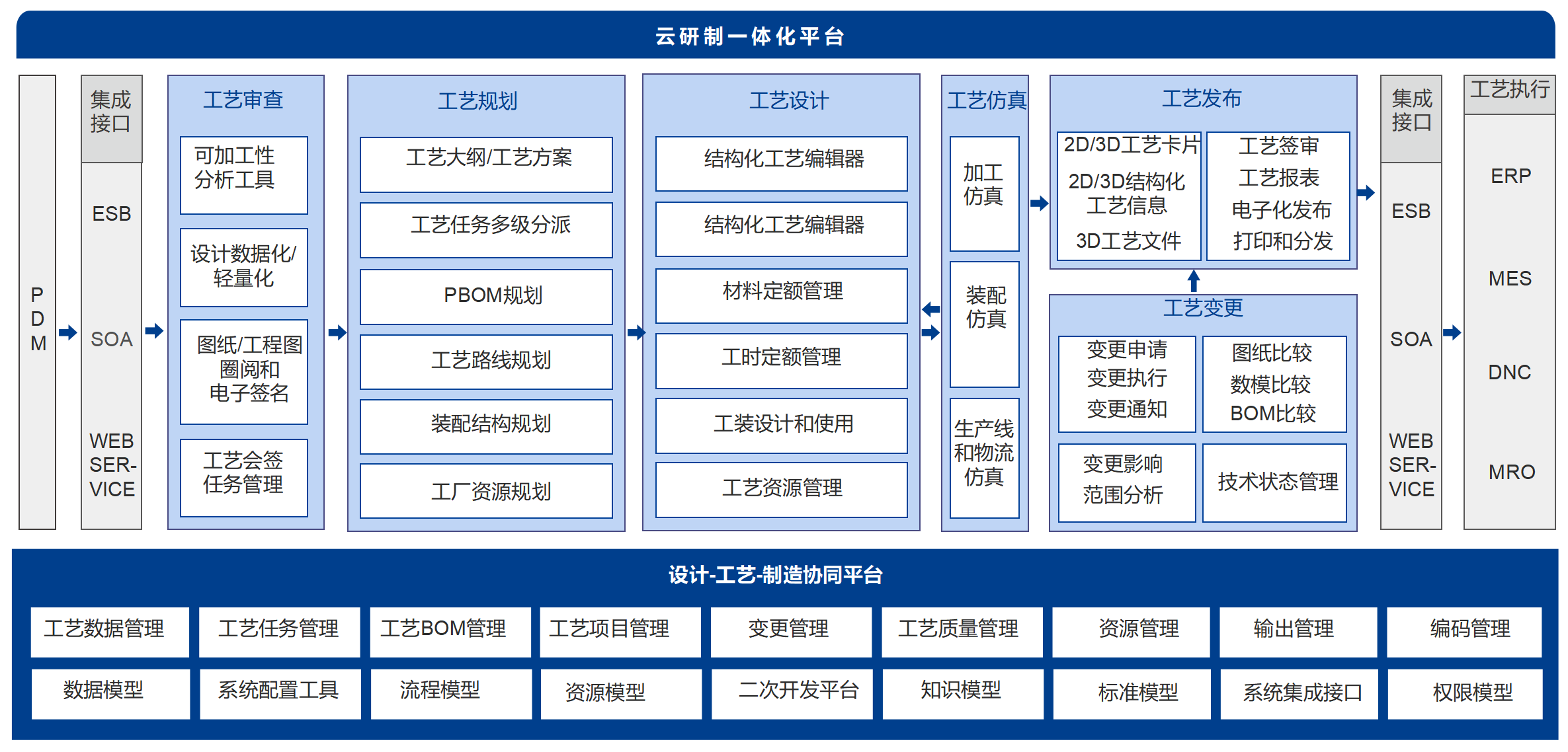 開目結(jié)構(gòu)化工藝設(shè)計(jì)與仿真系統(tǒng)將幫助企業(yè)實(shí)現(xiàn)三維可視化工藝編制,強(qiáng)化研發(fā)工藝協(xié)同;加強(qiáng)項(xiàng)目執(zhí)行和產(chǎn)品技術(shù)狀態(tài)的管控,提升工藝設(shè)計(jì)與管理效率;構(gòu)建工藝知識積累和管理體系,推進(jìn)工藝體系各項(xiàng)工作標(biāo)準(zhǔn)化、規(guī)范化,實(shí)現(xiàn)工藝創(chuàng)新;通過工藝仿真結(jié)果的調(diào)用和輔助分析,減少工藝試驗(yàn)次數(shù)或完全替代工藝試驗(yàn);通過與PLM、MES、ERP等系統(tǒng)集成,確保數(shù)據(jù)的關(guān)聯(lián)性和一致性,實(shí)現(xiàn)三維工藝可視化下車間,進(jìn)而全面實(shí)現(xiàn)設(shè)計(jì)-工藝-制造一體化管理。